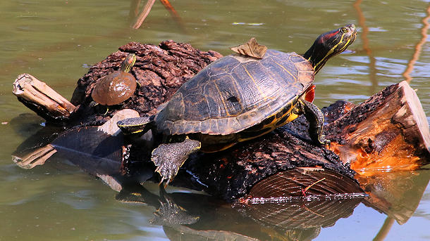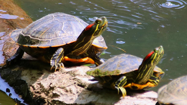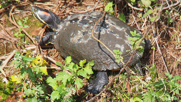 射水市上越市高田城址公園のミシシッピアカミミガメ