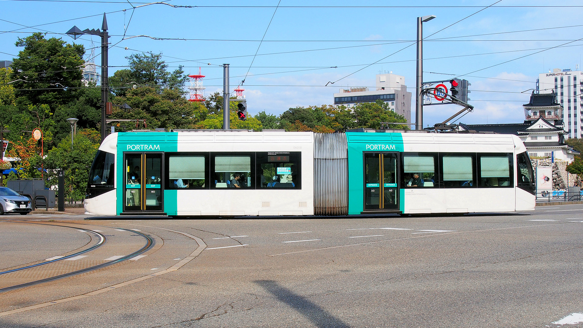 富山地方鉄道富山市内軌道線丸の内駅を発車した0605環状線