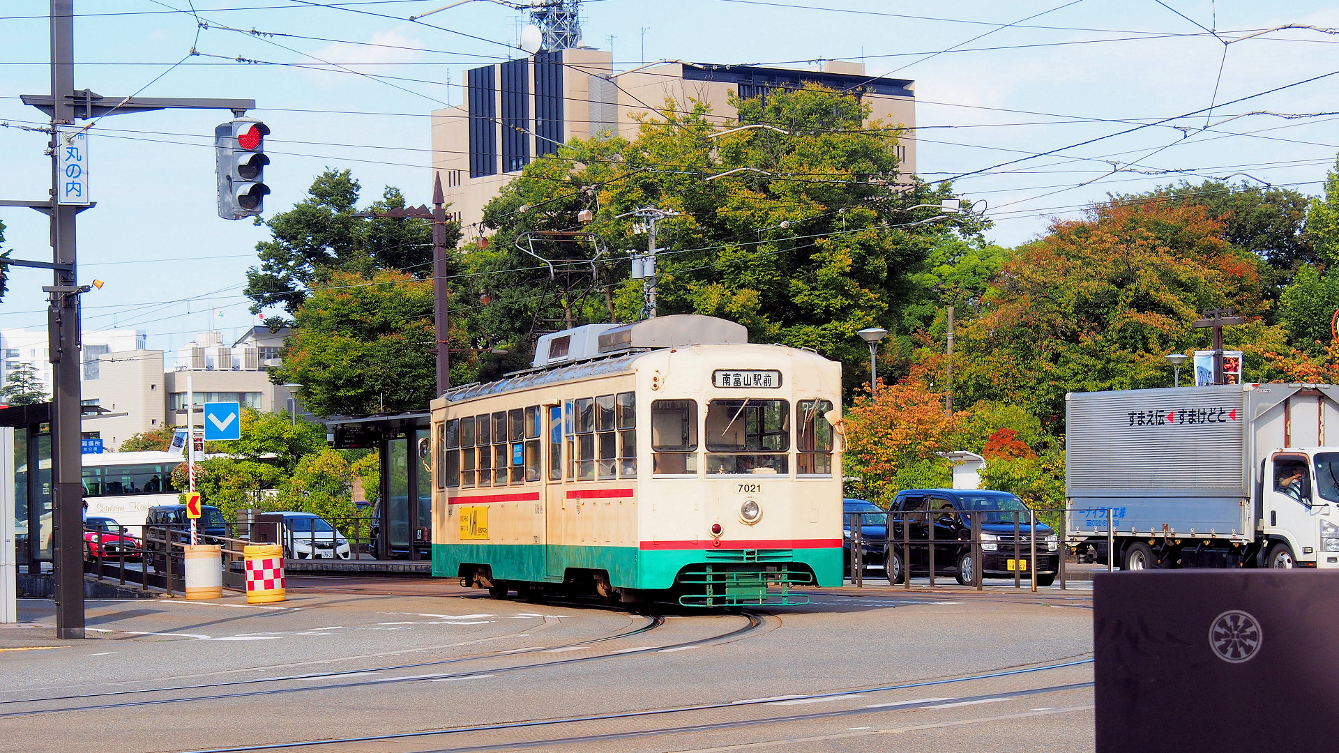 富山地方鉄道富山市内軌道線丸の内駅に到着する7023南富山駅前行き