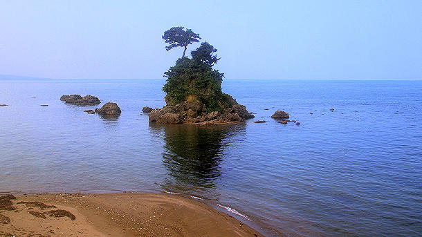 氷見線車窓から雨晴海岸女岩(めいわ)