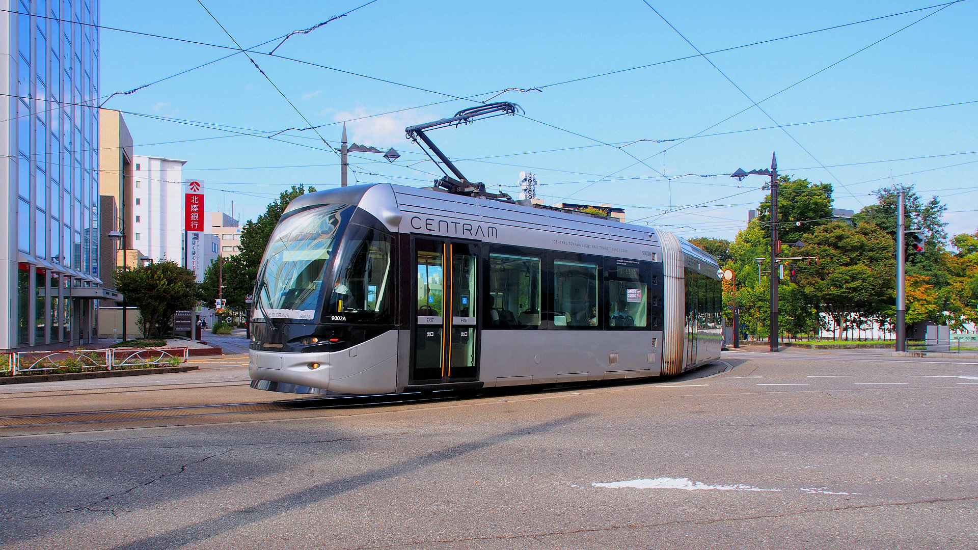 富山地方鉄道富山市内軌道線丸の内駅を発車した9002富山大学前行き