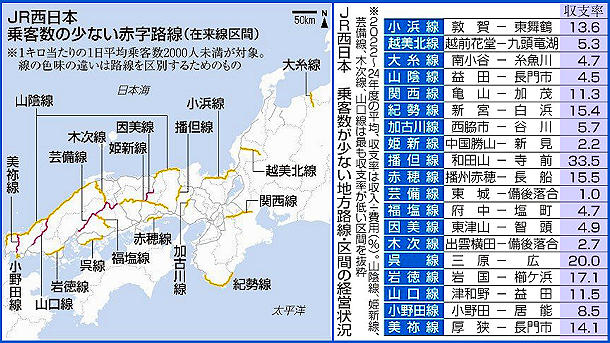 度)が2000人未満の19路線32区間全てで赤字だった。赤字総額は2