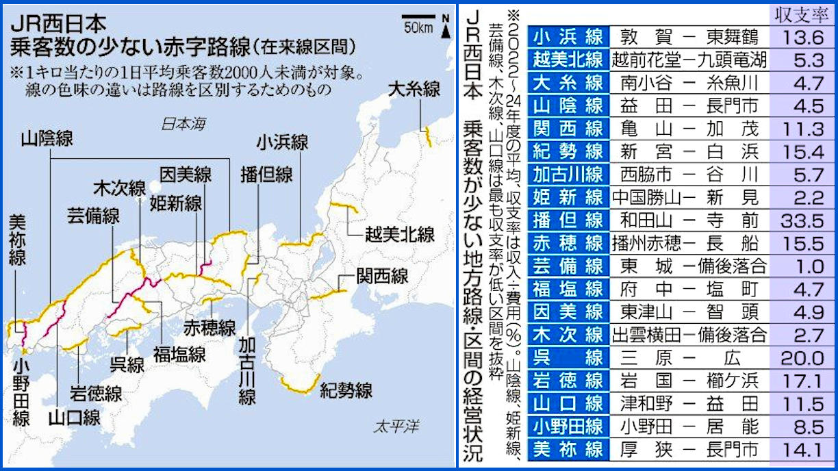 JR西日本は2022年から、過去3年度平均の地方路線の収支を公表し
