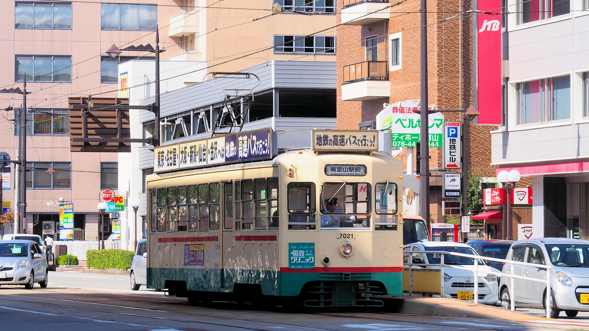 地鉄ビル前駅に停車中の7021南富山駅前行き 2019/10/23 撮影