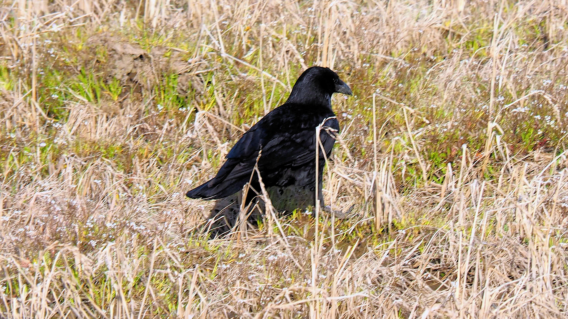 射水市大江の水田にいたハシブトガラス 2023/03/29 撮影