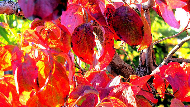 射水市戸破の自宅庭の夕陽があたるハナミズキの紅葉 2025/11/04 撮影