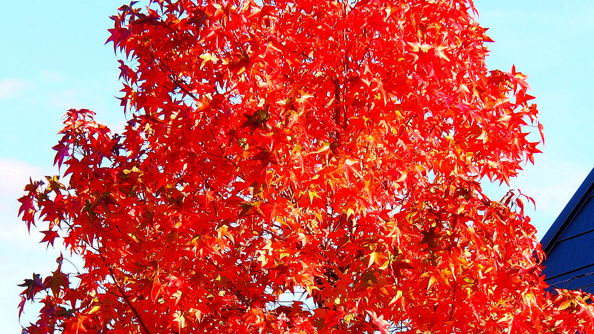 射水市戸破の射水市道小杉北部線のモミジバフウの紅葉 2024/11/04 撮影