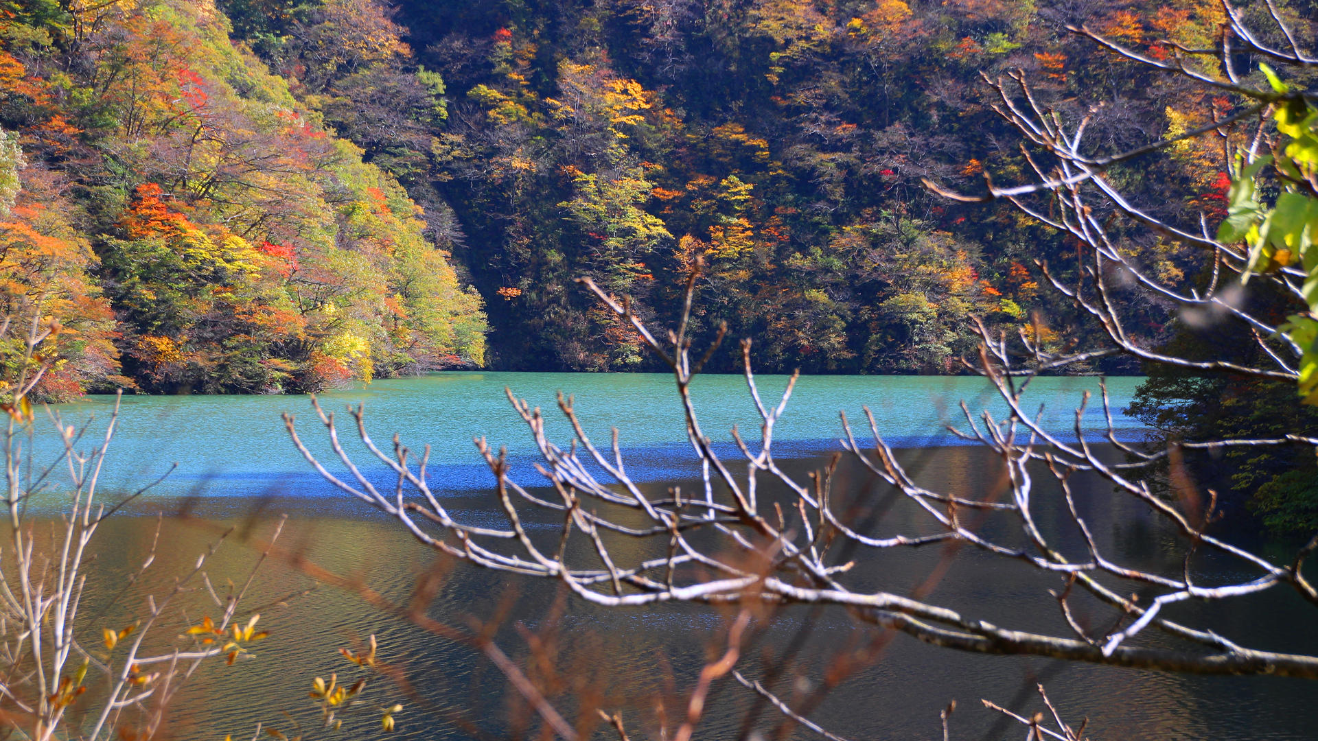 南砺市杉尾の国道156号線から祖山ダム湖の紅葉 2014/11/05 撮影