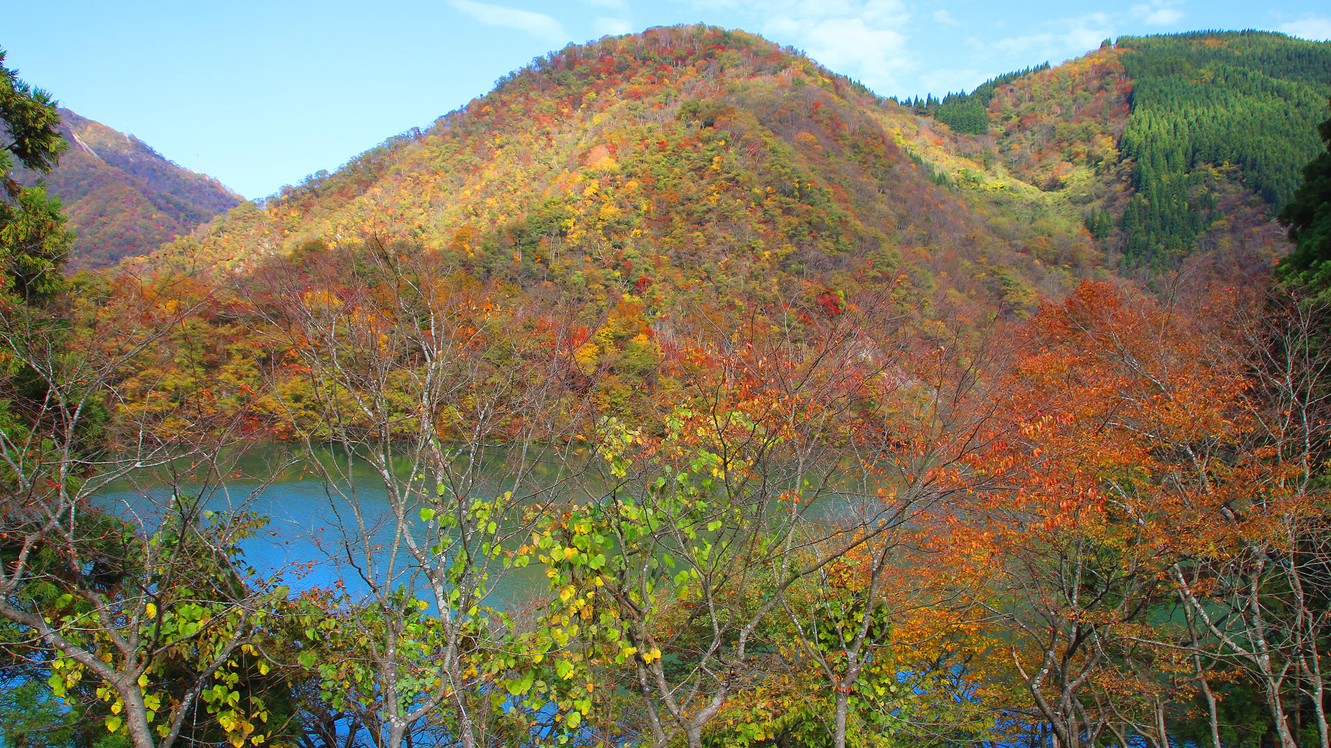 南砺市大崩島の国道156号線から祖山ダム湖の紅葉 2014/11/05 撮影