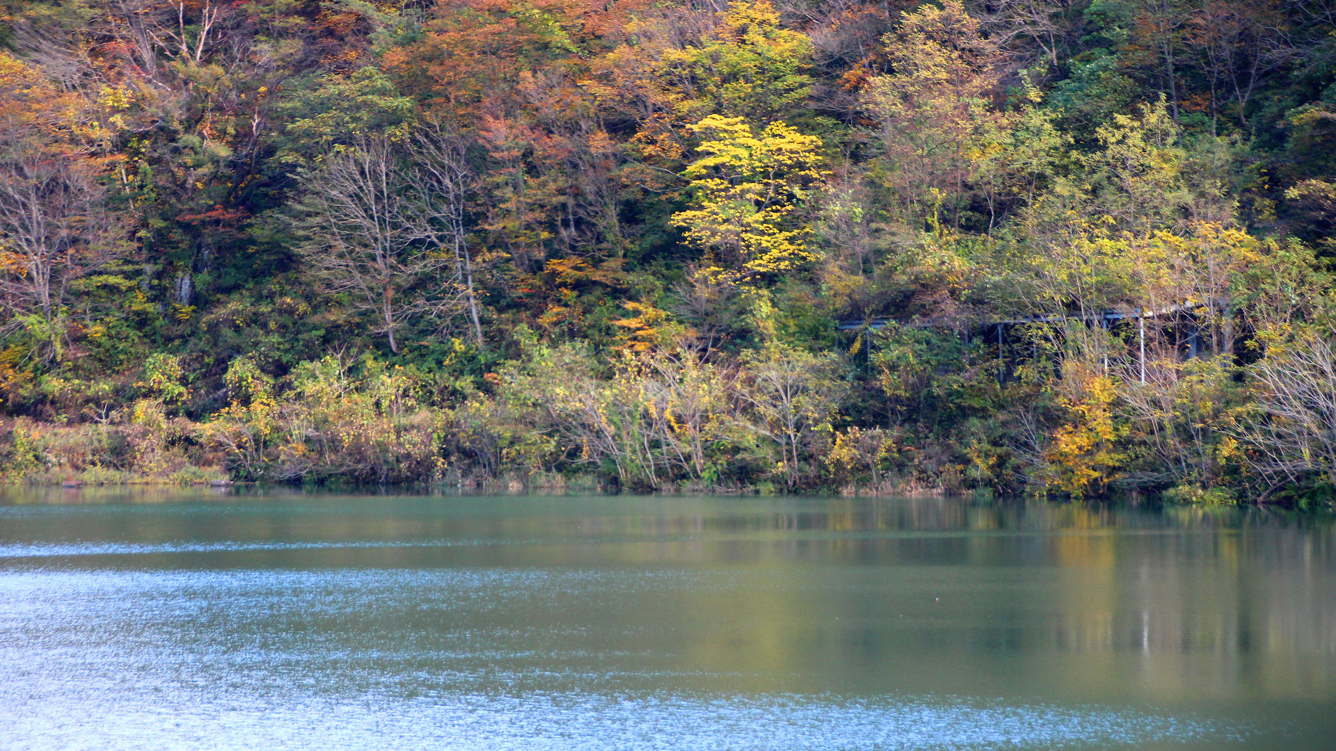 南砺市上平細島の国道156号線から小原ダム湖の紅葉 2014/11/05 撮影