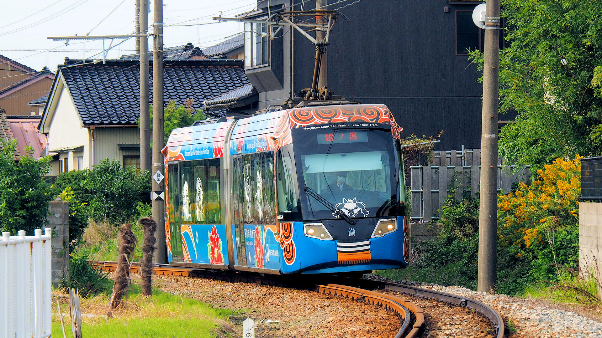 越ノ潟駅に到着するMLRV1005越ノ潟行き 2024/10/31 撮影