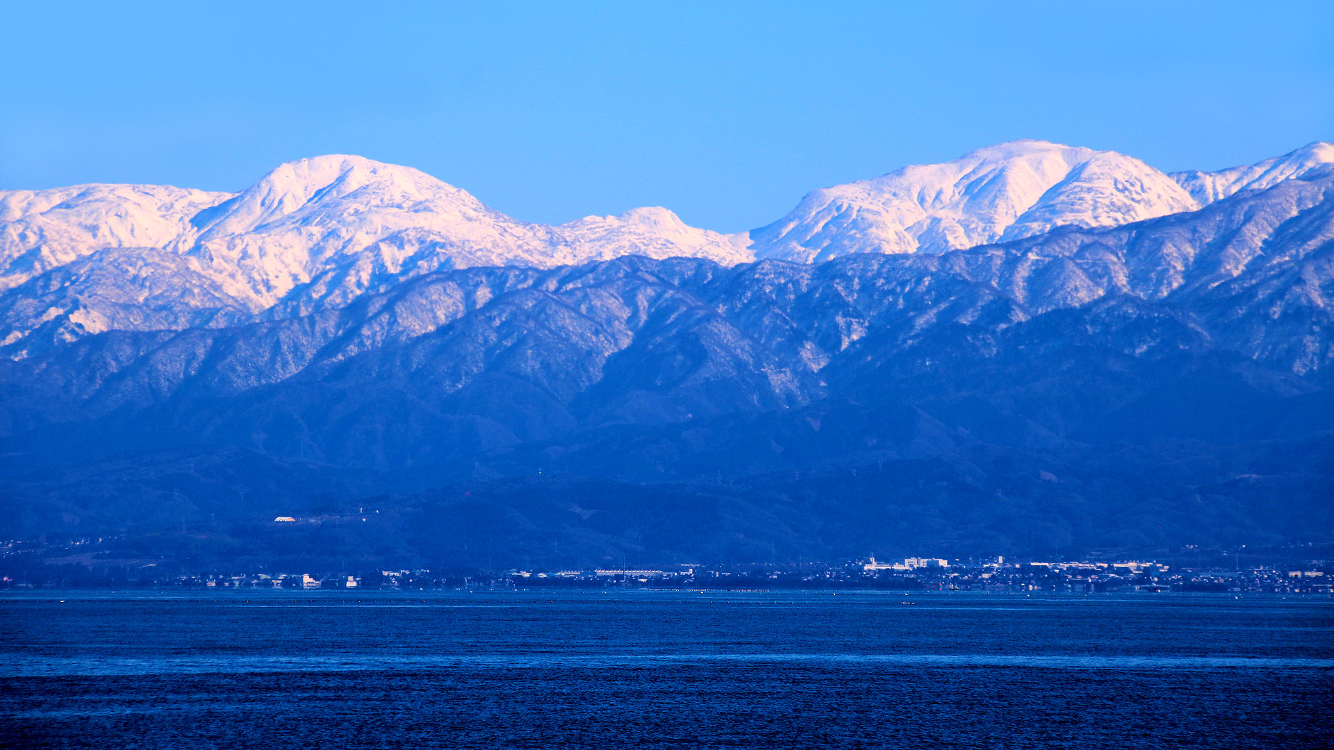 射水市の海老江海浜公園から朝日岳 2418m、雪倉岳 2611m