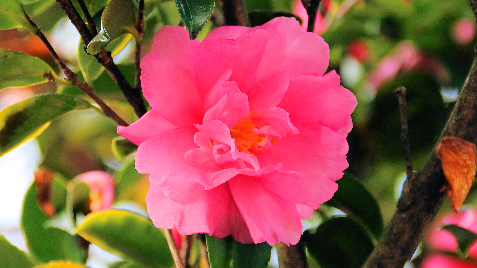 富山地方鉄道上滝線朝菜町駅付近のサザンカ 2016/12/12 撮影