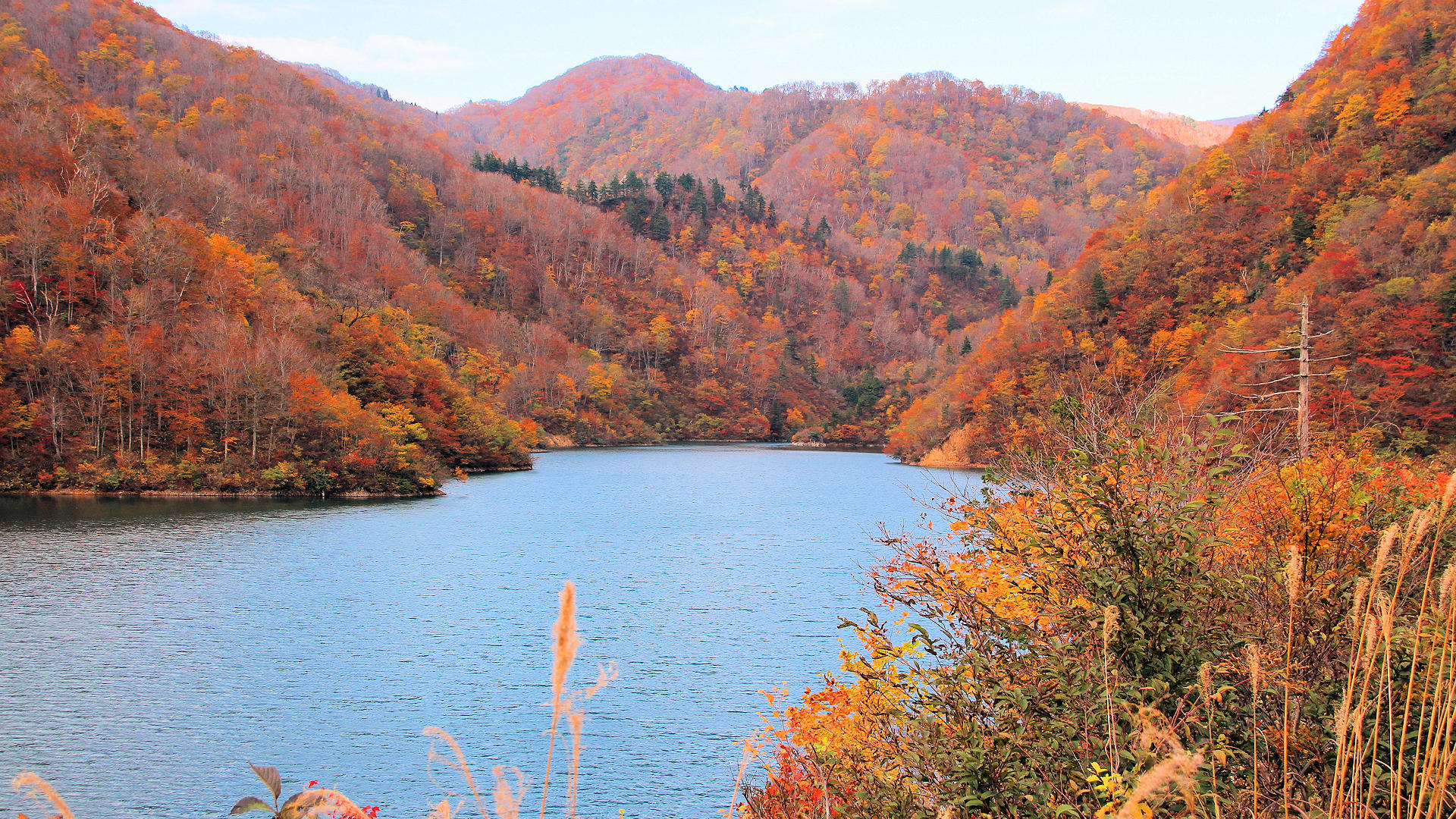 南砺市西赤尾町の境川ダムの半島部から上流側 2014/11/05 撮影