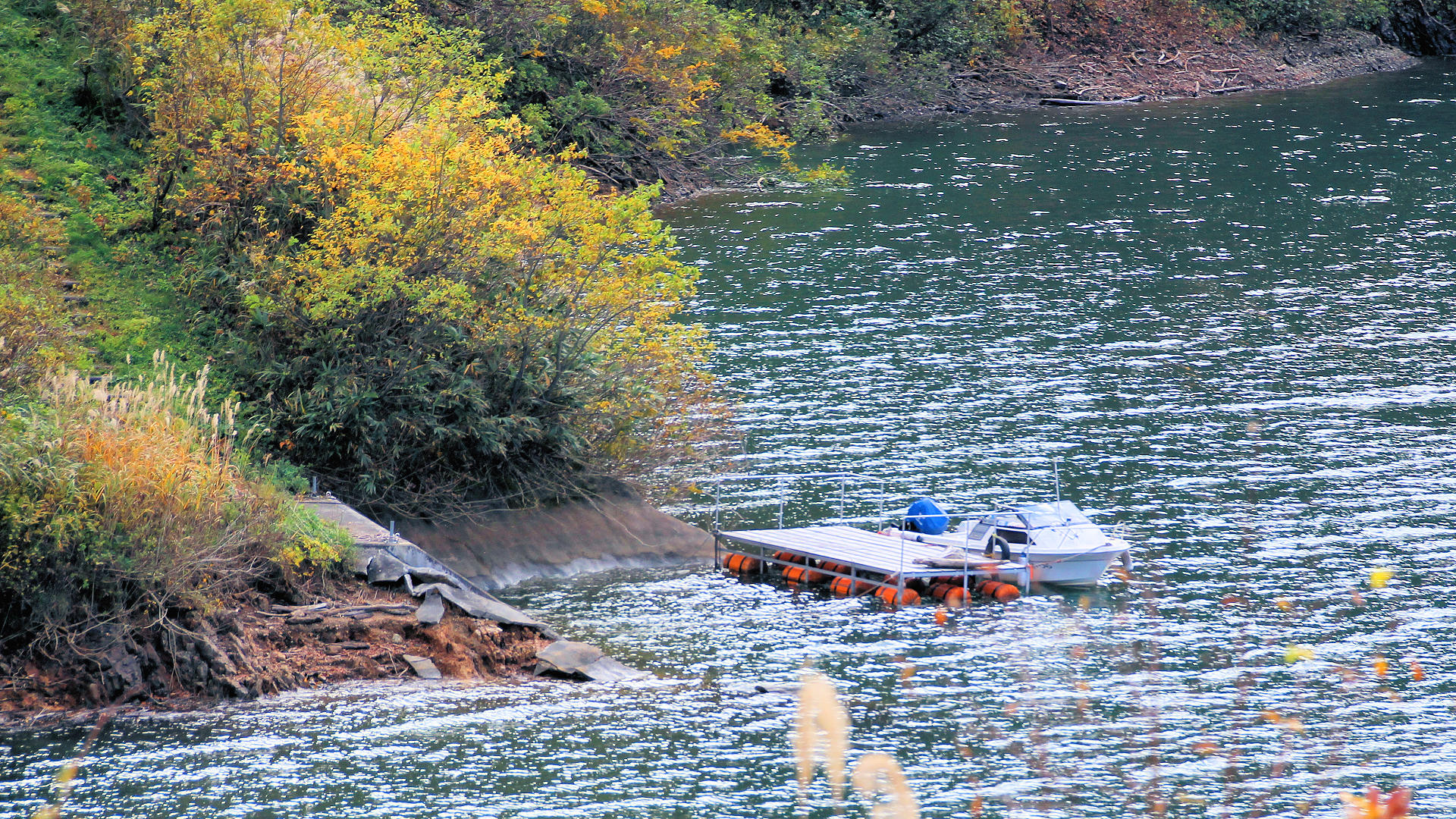南砺市西赤尾町の境川ダムのダム湖管理艇「かつら」 2014/11/05 撮影