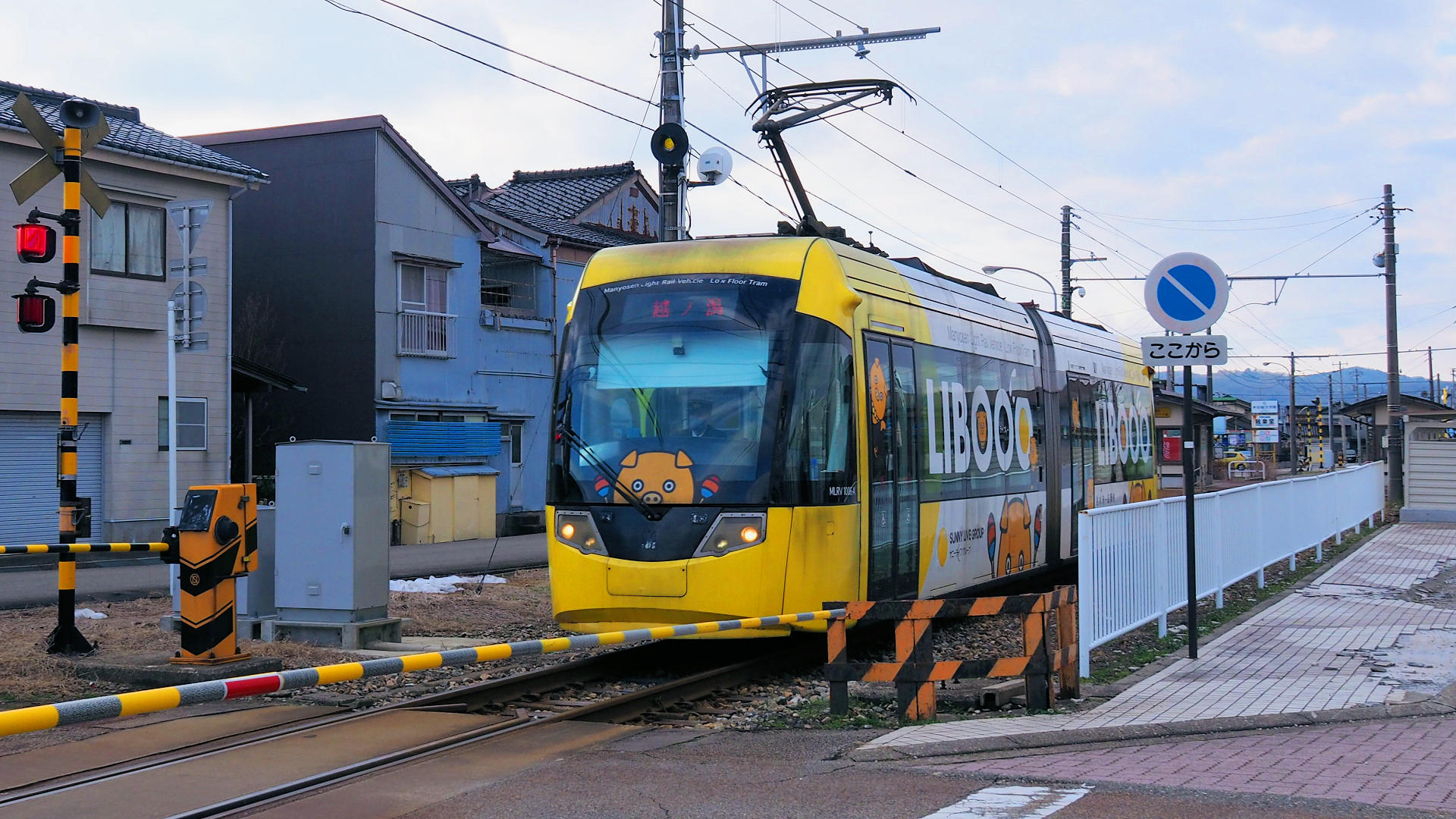 第一イン新湊クロスベイ前駅を発車したMLRV1006越ノ潟行き