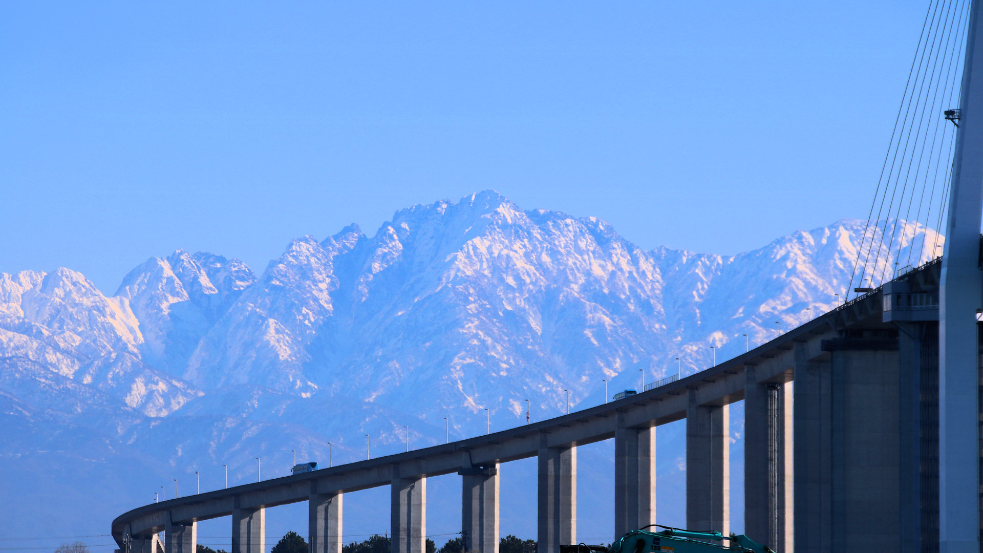 海王丸パークの海王岸壁から剱岳 2025/12/19 撮影