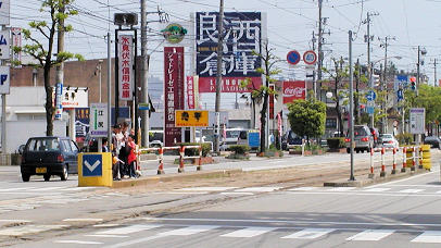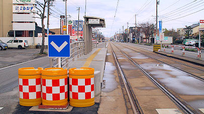 ![]() ジャスコ前横断歩道から電停 2007/12/12 |