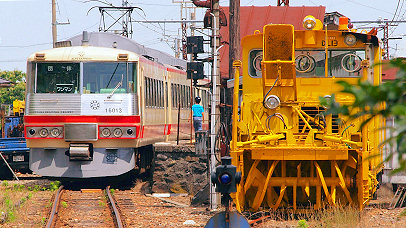 ![]() キャタピラと鉄輪の保線車両 |