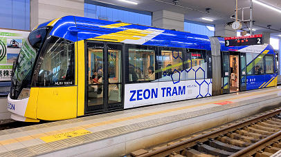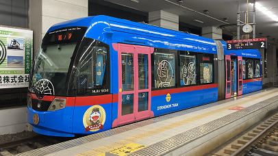 発車したMLRV1003ドラえもんトラム越ノ潟行き