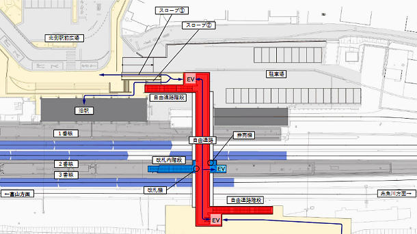 ![]() 泊駅バリアフリー化イメージ 画像:朝日町から |