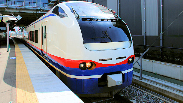 ![]() 停車中のJR東日本E653系H-201編成特急「しらゆき」新潟行き |