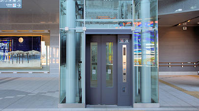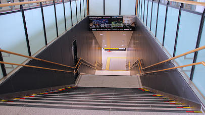 ![]() 入口からさくらプラザ(改札階)への階段 |