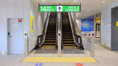 ![]() 改札階の14、13番ホームへのエスカレーター |