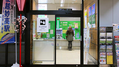 えちごトキめき鉄道の直営駅で窓口の営業時間は7時から22時15 分までとなっている。新幹線併設駅のため全国のJR切符販売はなく新 幹線駅で購入する。 上越地方で古くから相互補完の関係を築いてきた高田市(城下町)と直 江津市(港町)が、1971年(昭和46)年4月29日付で新設合併して 発足した。 2005年(平成17年)1月1日付で周辺の13町村を編入合併し、 市町村の合併の合併特例法に基づく地域自治区制度を全国で初めて導入 した。現在は地方自治法に基づく28の地域自治区を設置している。 旧高田市は高田区となっているが、2005年合併以前の市域の住所 表示には区名が付かない。 |