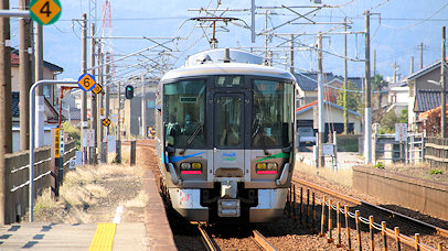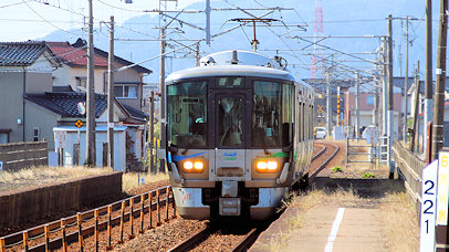 ![]() 発車した521系IR05編成富山行き |