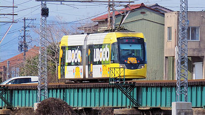 ![]() 国道415号線踏切過するMLRV1006高岡駅前行き |