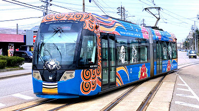 ![]() ドラえもんトラム乗車の台湾観光客のバス |